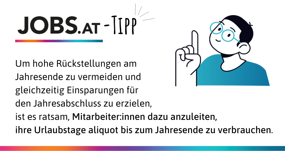 Wir bei jobs.at raten unseren Werkstudent:innen dazu, sich immer gleich eine Woche Urlaub zu nehmen. So können wir besser die Rest-Urlaubstage besser im Blick behalten und generell besser planen.